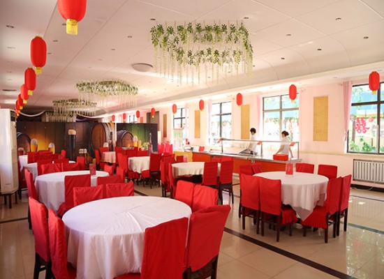 西海岸餐飲部:設有三個宴會大廳,40多個包房,可同時接待1600人就餐。其中豪華西區珍饈餐廳19個包間;70后主題餐廳以古典形式裝修,14個包間,讓你回味童年時代的美味。夏季晚上還提供燒烤等休閑小吃;院內可停放200多輛車位,是舉辦婚宴、聚會、生日宴會的理想場所。